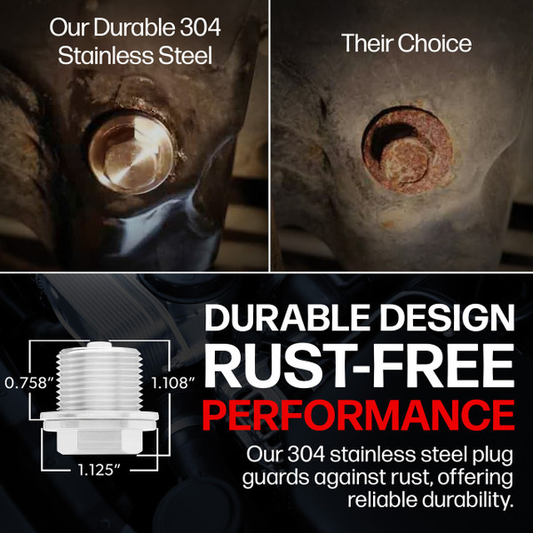 PREMIUM STAINLESS STEEL: The drain plug market has a plethora of options that are constructed of aluminum. Aluminum is an inferior metal choice due to its inferior strength and will commonly shear or snap, leaving you with a broken plug stuck in your oil pan. Aluminum has no place as a material for a drain plug. Our stainless steel is sourced from the States, promising not to be a weak, recycled material often found in foreign metals.