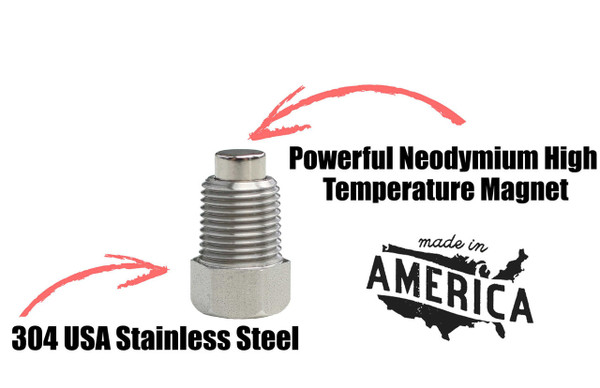 Also, neodymium magnets are one of the strongest magnets available on the planet, and we use one of the strongest-grade versions available. Our magnet has the strength to hold weights over 2.2 lbs! This empowers our plug with enormous strength to effectively pull unwanted metals out of your motor oil, resulting in longer engine life. Loose metal debris in your engine oil will slowly cause wear on the internals of your engine. Our magnet will extract the small metal particles that are too fine for oil filters to catch. Oil filters are designed to catch particles larger than 35 microns. It will also capture larger metal shavings that plug oil filters.