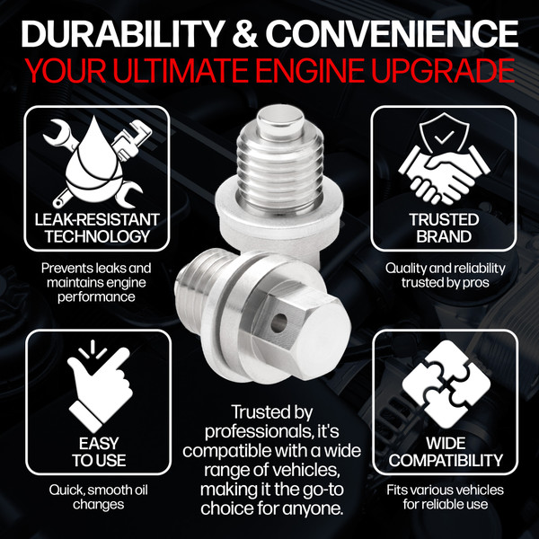 PREMIUM STAINLESS STEEL: The drain plug market has a plethora of options that are constructed of aluminum. Aluminum is an inferior metal choice due to its inferior strength and will commonly shear or snap, leaving you with a broken plug stuck in your oil pan. Aluminum has no place as a material for a drain plug. Our stainless steel is sourced from the States, promising not to be a weak, recycled material often found in foreign metals.