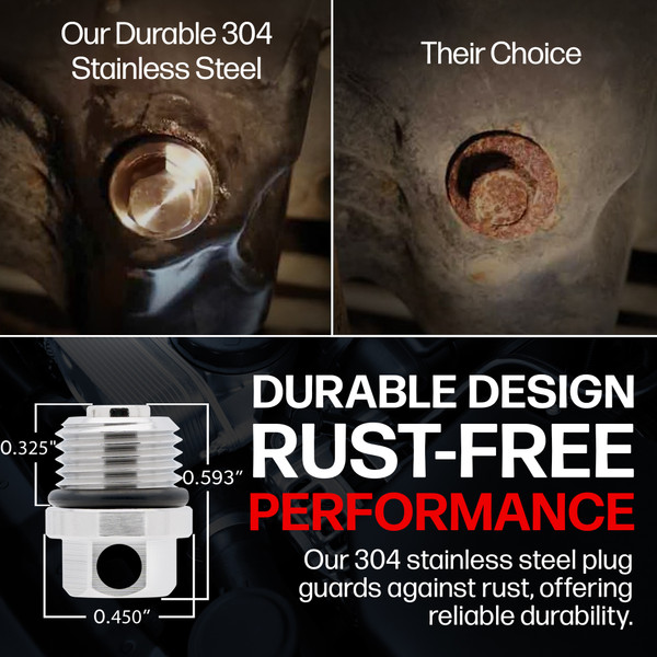 PREMIUM STAINLESS STEEL: The drain plug market has a plethora of options that are constructed of aluminum. Aluminum is an inferior metal choice due to its inferior strength and will commonly shear or snap, leaving you with a broken plug stuck in your oil pan. Aluminum has no place as a material for a drain plug. Our stainless steel is sourced from the States, promising not to be a weak, recycled material often found in foreign metals.