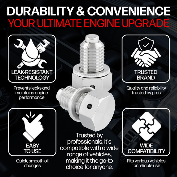 PREMIUM STAINLESS STEEL: The drain plug market has a plethora of options that are constructed of aluminum. Aluminum is an inferior metal choice due to its inferior strength and will commonly shear or snap, leaving you with a broken plug stuck in your oil pan. Aluminum has no place as a material for a drain plug. Our stainless steel is sourced from the States, promising not to be a weak, recycled material often found in foreign metals.