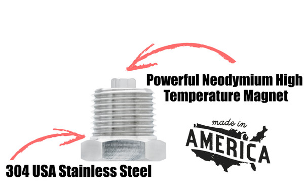 Also, neodymium magnets are one of the strongest magnets available on the planet, and we use one of the strongest-grade versions available. Our magnet has the strength to hold weights over 2.2 lbs! This empowers our plug with enormous strength to effectively pull unwanted metals out of your motor oil, resulting in longer engine life. Loose metal debris in your engine oil will slowly cause wear on the internals of your engine. Our magnet will extract the small metal particles that are too fine for oil filters to catch. Oil filters are designed to catch particles larger than 35 microns. It will also capture larger metal shavings that plug oil filters.