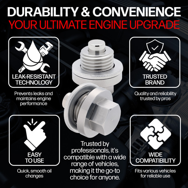 • EASY TO INSTALL - Our plug will install in place of your current drain plug. Simply wipe the magnet clean of debris during oil change. USE PRODUCT FITMENT FEATURE TO CONFIRM FITMENT, EMAIL OR ASK A QUESTION TO ENSURE THIS WILL WORK WITH YOUR VEHICLE.