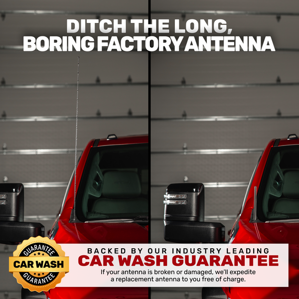 - CAR WASH PROOF – Car washes are grave yards for antennas! Just time before long factory antennas bend and snap! Our redesigned 6 3/4" now stouts a new level of strength, so much so that we guarantee and replace any that break in a car wash within 2 full year from purchase date. If it breaks, we issue a replacement. Its strength is Tried, Tested and Proven. Same Superb Reception, New Strength Standards!!! (More details below)