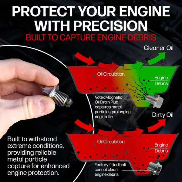 HIGH-TEMPERATURE N48SH GRADE NEODYMIUM MAGNET: What makes our drain plug unique, outside of its flawless craftsmanship and top-notch materials is what’s at the heart of it: a high-temperature N48SH grade neodymium magnet. Our plug uses a rare-earth, high-strength neodymium magnet, rated specifically to function in high-temperature environments, ensuring the extraction of unwanted ferrous particles from your vehicle’s engine. The VOTEX drain plug magnet will operate in temperatures up to 302°F; this is higher than most standard magnets, which stop working at 175°F. Quality motor oil will tolerate oil temperatures up to 250°F but will start breaking down once it reaches 275°F. The operating temperature for engine oil is between 194 and 230°F, so our magnet will work at temperatures far past that of engine oil.